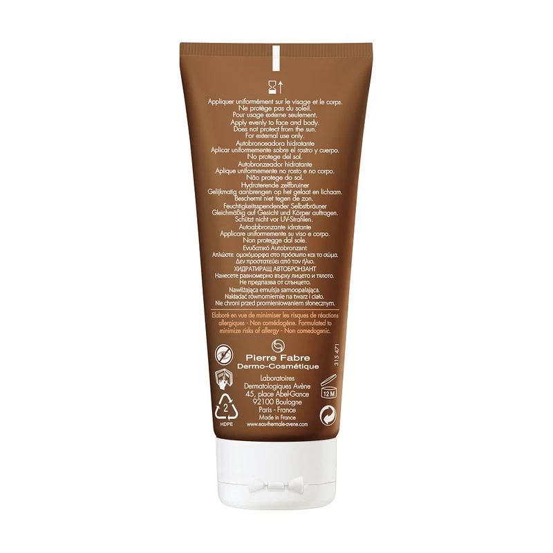 AVENE THERMAL SPRING WATER (AVENE AQUA). CYCLOMETHICONE. PROPYLENE GLYCOL. DIHYDROXYACETONE. CAPRYLIC/CAPRIC TRIGLYCERIDE. MINERAL OIL (PARAFFINUM LIQUIDUM). GLYCERYL STEARATE. ISODODECANE. PEG-100 STEARATE. DICAPRYLYL ETHER. STEARYL ALCOHOL. CAPRYLYL GLYCOL. DISODIUM EDTA. FRAGRANCE (PARFUM). TOCOPHERYL GLUCOSIDE. XANTHAN GUM. TOCOPHEROL.