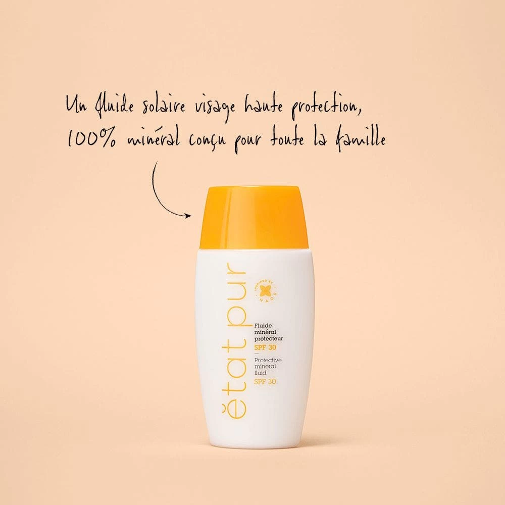 Fluido minerale protettivo con SPF30 per una protezione ottimale del Viso, adatto a tutta la famiglia e alle zone sensibili.