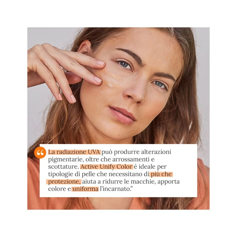 Active Unify è una crema solare fluida a rapido assorbimento e ad altissima protezione, che aiuta a correggere le macchie causate dal sole.