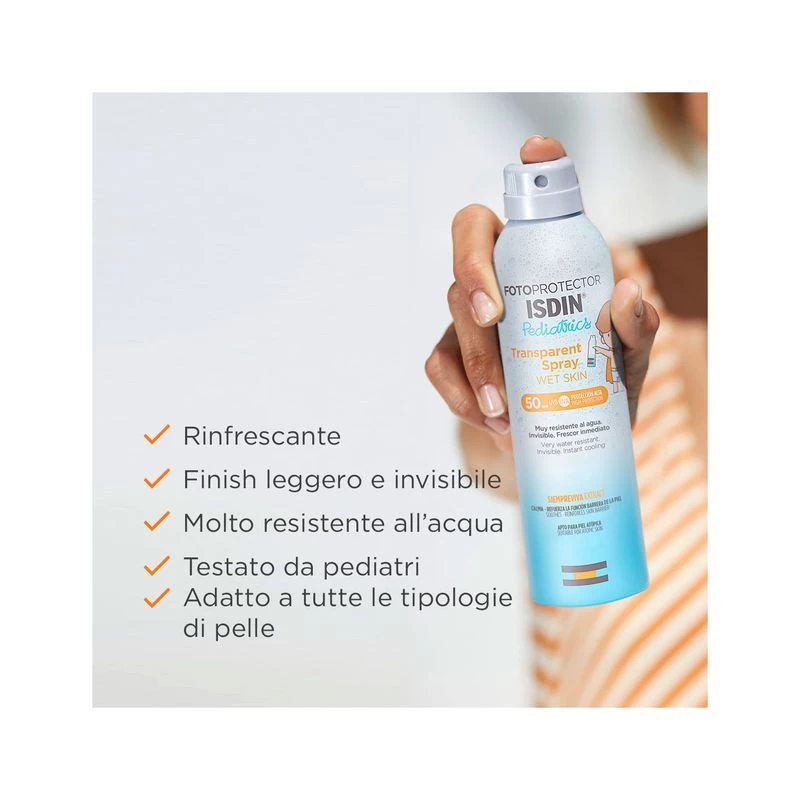 Descrizione e Modo d’Uso Isdin Fotoprotector Corpo Transparent Spray Wet Skin Pediatrics SPF50 250ml