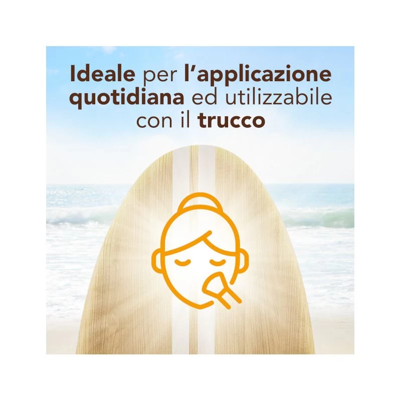 Rinfresca immediatamente, protegge e idrata la pelle stressata dal sole, lasciandola morbida e dall’aspetto sano. Tripla resistenza: contiene filtri UVA/UVB avanzati per una protezione immediata ed efficace. Aiuta a proteggere la pelle da agenti aggressivi come cloro, mare e acqua salata. Resistente ad acqua e sudore. Protegge la pelle dai raggi UVA lunghi, dai danni e dall’invecchiamento precoce causati dall’esposizione al sole. Assorbimento rapido, nessun residuo bianco, non appiccica e non unge. Lascia la pelle levigata. Ideale per l’applicazione quotidiana ed utilizzabile con il trucco.