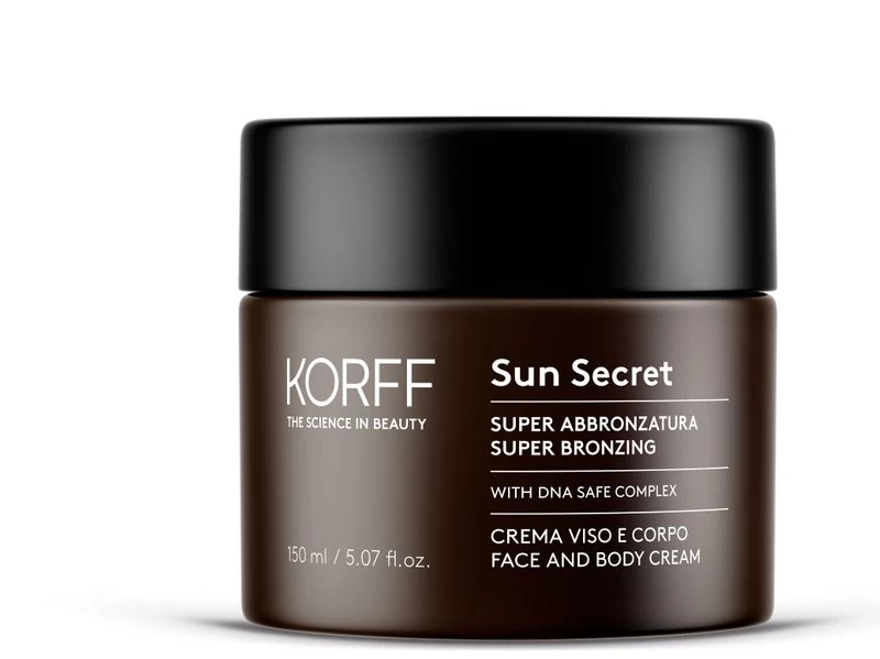 Korff Sun Secret Crema Solare Super Abbronzante Sublimatrice dell’Abbronzatura è un’emulsione dalla texture morbida, vellutata e di rapido assorbimento, particolarmente indicata per potenziare e sublimare l’abbronzatura di viso e corpo. La sua formulazione innovativa con DNA-Safe Complex preserva la bellezza della pelle e per la presenza dell’esclusivo Melanobronze™ al 5% stimola la produzione di melanina, accelerando ed intensificando l’abbronzatura. La pelle acquista un colorito bronzeo intenso ed uniforme in pochi giorni ed un aspetto fresco e luminoso. Adatta a fototipi scuri o a fototipi medi con pelle già abituata al sole. Non contiene filtri solari.
