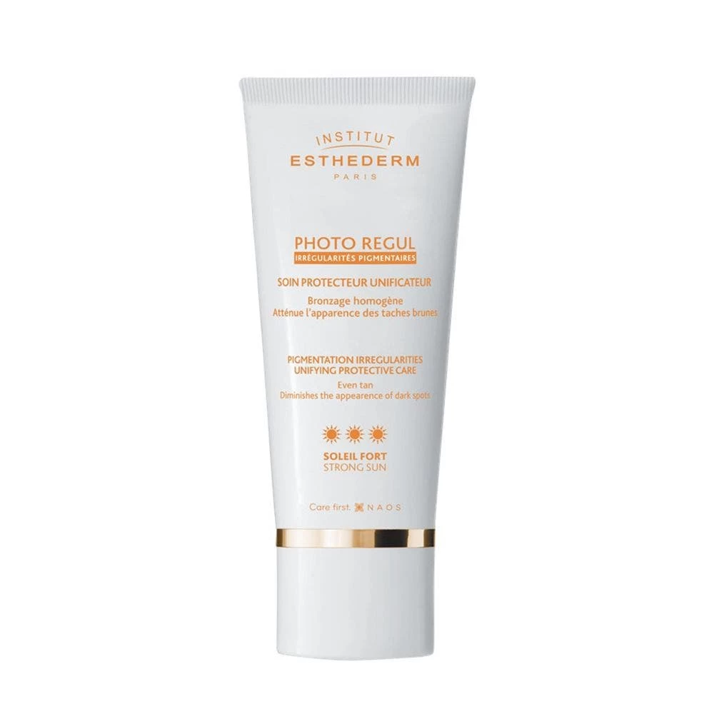 La crema solare Photo Regul riduce la comparsa delle macchie scure uniformando il contrasto tra le zone iperpigmentate e la pelle abbronzata.